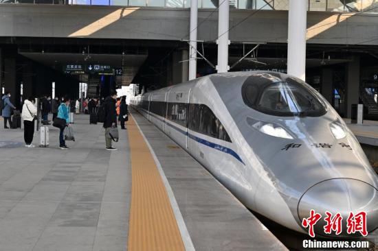 2月9日,河北石家庄火车站站台上,出行的旅客等待列车。
