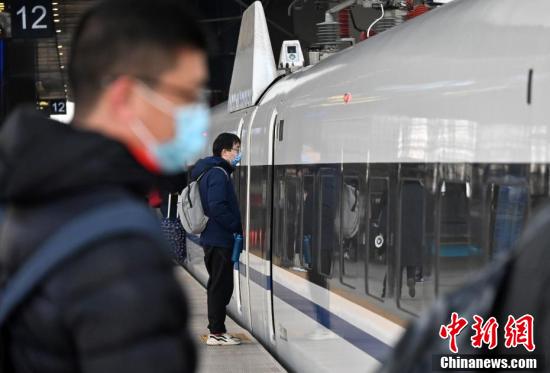 2月9日,河北石家庄火车站站台上,出行的旅客们等待乘车。