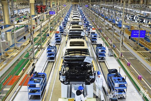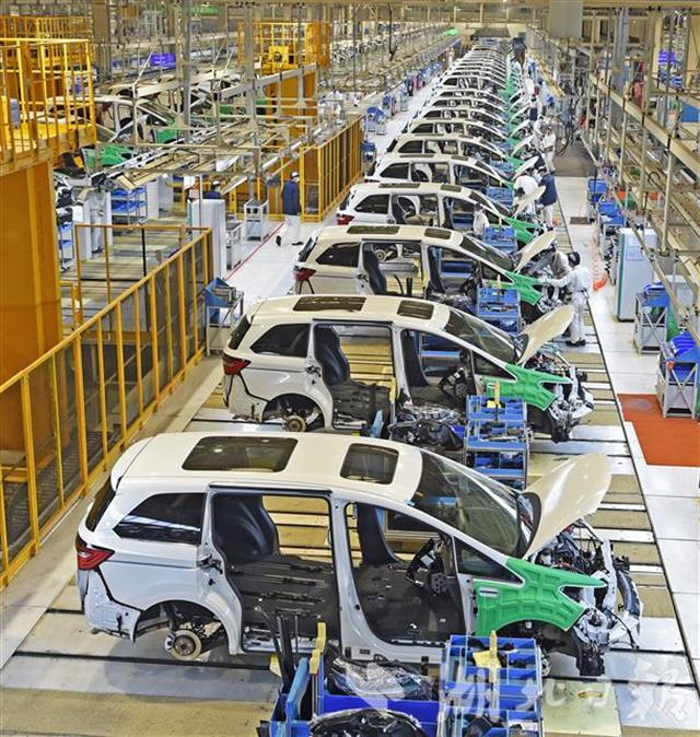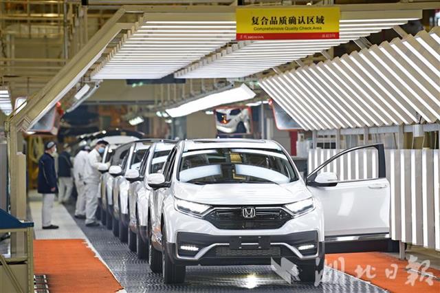 2月9日,农历腊月二十八,东风本田汽车有限公司第三工厂,总装车间生产线上繁忙如常,一辆辆整车产品在流水线上移动,工人们正在有序生产,平均每50秒下线一辆新车。2020年,东风本田销量达到85万辆,同比增长5.88%,创下历史新高。(湖北日报全媒记者 李溪 摄)