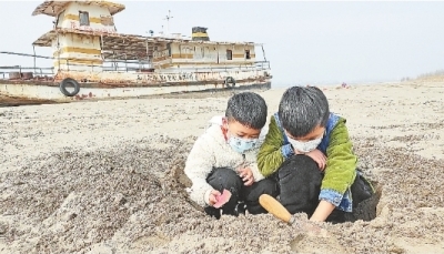 2月9日,天气晴好,阳光明媚。在天兴洲沙滩上,家长带着孩子们玩沙,驾驶沙滩车享受“沙漠”冲浪的乐趣。