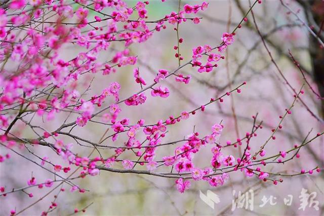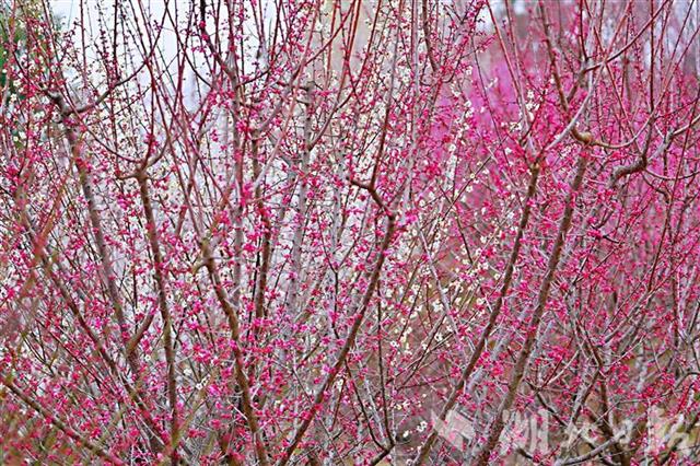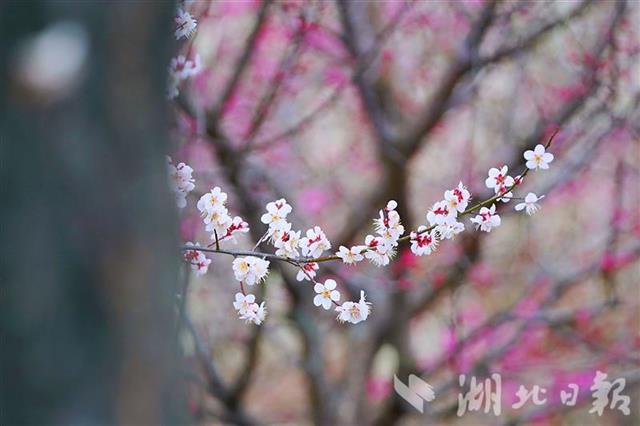 2月11日(农历腊月三十),罗田县燕儿谷梅花已进入最佳赏花期。记者在现场看到,园内各色梅花争相绽放,美不胜收。