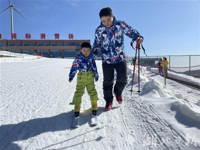 “太阳当空照,脚上绑雪橇。人在风中舞,汗在身上冒。”这是宜都市民王旭云2月13日带着4岁的儿子王晨硕,到五峰县国际滑雪场体验滑雪后赋的打油诗,父子俩玩得相当开心。