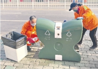 除了收运商户垃圾,每经过一个果皮箱,李芙蓉都会停车,给果皮箱消毒,收走装满的垃圾袋,套上新的垃圾袋,整个流程一气呵成。碰到有污迹的果皮箱,他还会和清扫工人一起擦洗。长江日报记者注意到,李师傅工作时经常摘手套,“垃圾袋要系紧,戴着手套不好操作”。一阵忙碌后,街上清清爽爽,垃圾收集车上两个240升的垃圾桶已经装满了,李芙蓉将车开到附近的垃圾无害化处理工作间,拖下两个装满的大桶,放上两个冲洗过的空桶。据介绍,清运回来的垃圾在处理间进行除臭、灭蝇后,当天晚上再由垃圾车一次性转运。