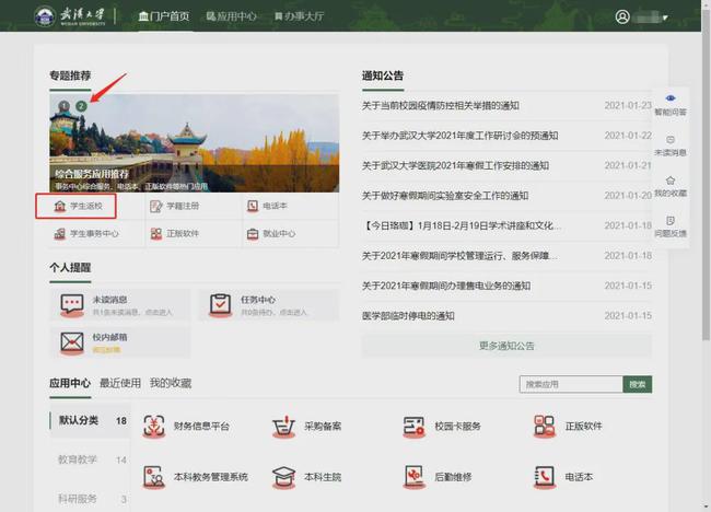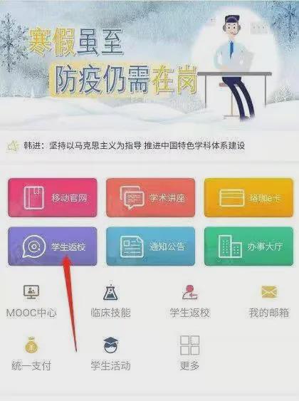 信息门户专题推荐第二页“学生返校”应用