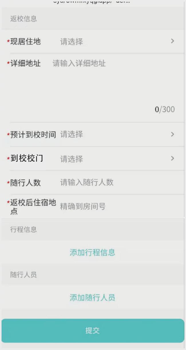 5、填写返校行程报告单。根据实际交通情况,添加相应行程信息。