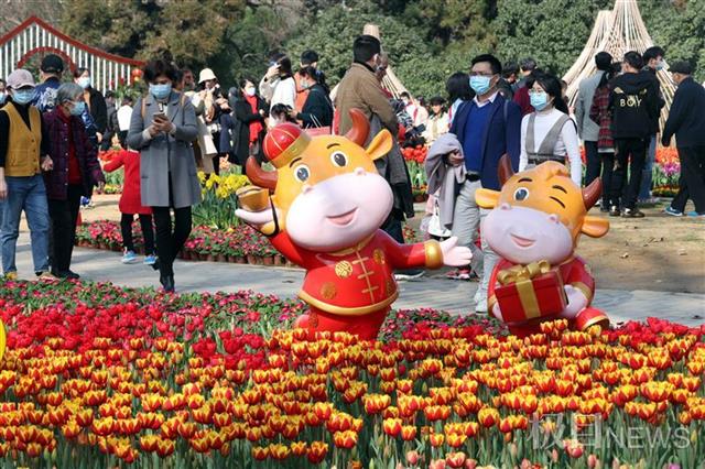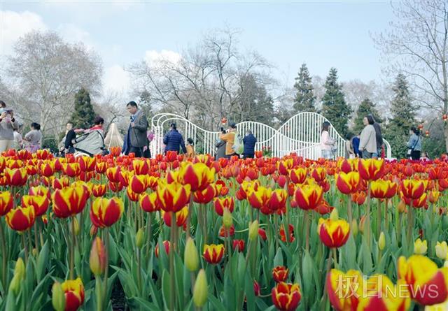 去年,汉口解放公园的郁金香与市民失约,今年春节喜庆归来。