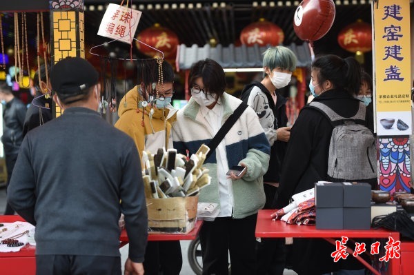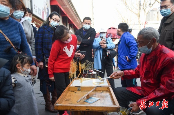 长江网2月16日讯2月16日,吉庆街人头攒动,市民边吃边逛,拍照留念,体味各类传统民俗文化。记者许魏巍 摄影报道