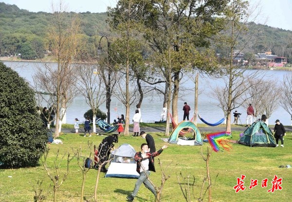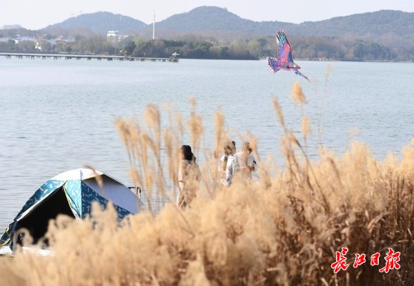 2月16日大年初五,武汉东湖绿道湖畔,人们在春日暖阳下散步、放风筝……沐浴春光。记者高勇 摄影报道