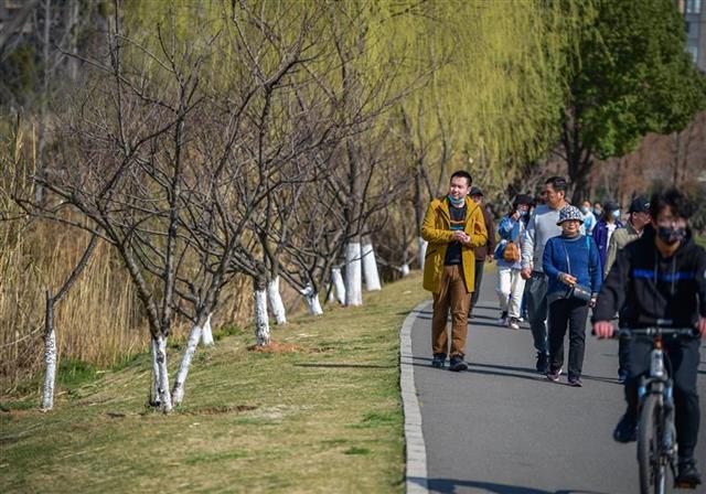 极目新闻讯(记者刘中灿)2月17日, 武汉东湖白马驿站的桃花岛迎来了一波又一波的游客。桃花是白马道和白马洲头的一个亮点,桃花岛是武汉东湖绿道的亮点和网红打卡点,又有“双岛五堤,十里桃花”的美称。