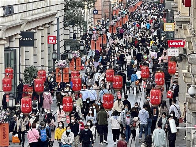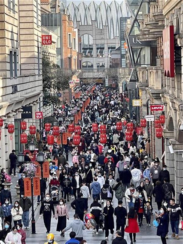 在两轮总计1亿元的“武汉春节消费券”强力拉动下,今年春节,武汉新春线下消费持续升温,留汉过年“逛吃逛吃”模式成为今年春节的新常态。图为2月17日的武汉楚河汉街,逛街购物的市民游客人头攒动。(湖北日报全媒记者 李溪 摄)