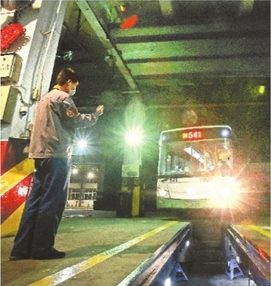 “清洗环节一个都不能漏。”在值班负责人李云峰的大声叮嘱中,老家在湖南衡阳市的技工宋先胜把公交车的空调及全部冷却系统的滤网拆下,用专用清洗机将消毒液加温加压后,仔细地连同全车喷洗了一遍。这是目前公交车安检中一个至关重要的环节。