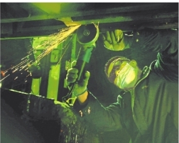 角磨机打出的火花仿佛迎春绽放的礼花。