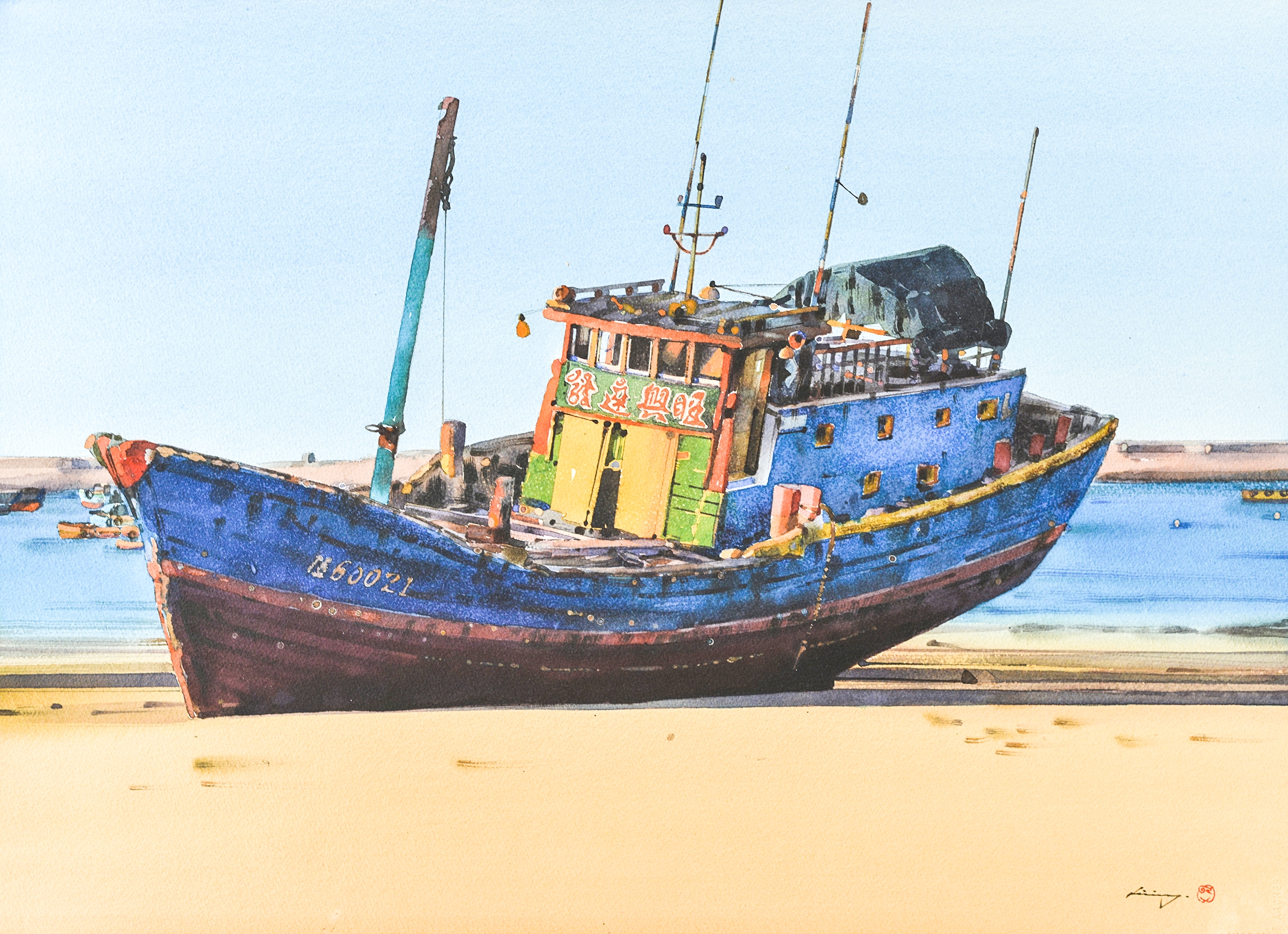 他的水彩画具有深厚的人文底蕴和丰富的情感,别具一格。他喜欢画船和海景,2012年,作品《不再重现的风景五》获第二届上海朱家角国际水彩画双年展优秀奖(最高奖)。2015年,代表作品《不再留念》荣获第五届全国青年美展优秀奖(最高奖)。