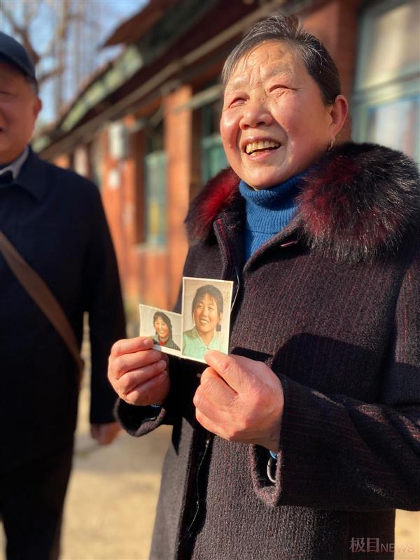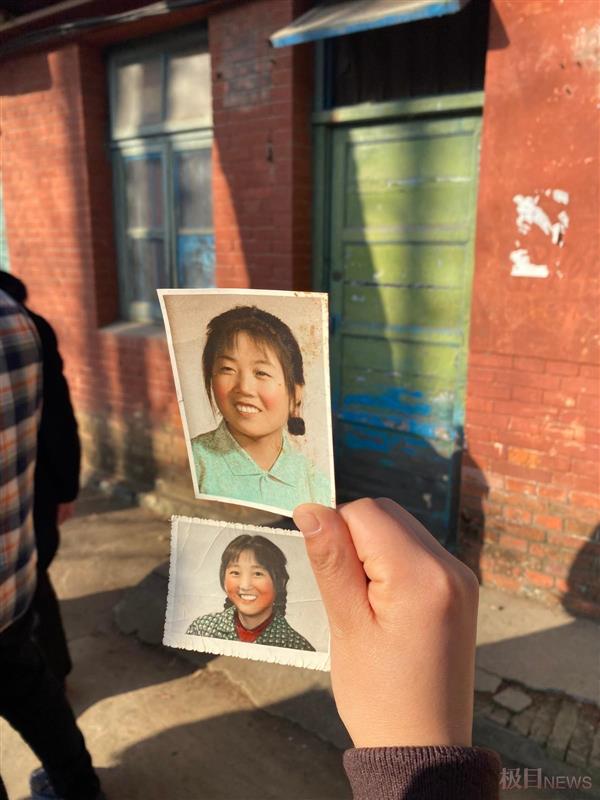 王道琴拿出当年她自己的照片和李焕英(红色打底衣)照片