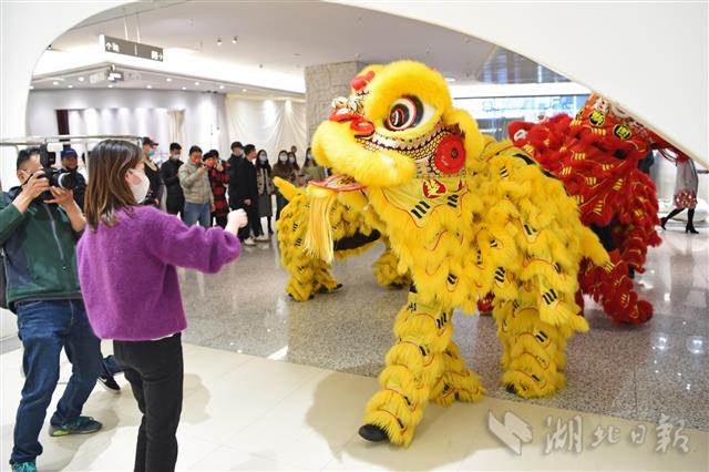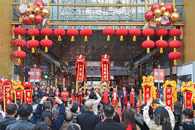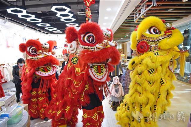 “开市大吉!恭喜发财!”随着声声吉祥话和喧天锣鼓声,八头醒狮在云尚武汉国际时尚中心巡游,向商户们贺新年送祝福。2月19日,正月初八,该中心商铺重新开市营业,热闹的舞狮表演舞出新年新气象,期望新一年生意红红火火。(湖北日报全媒记者 李溪 摄)