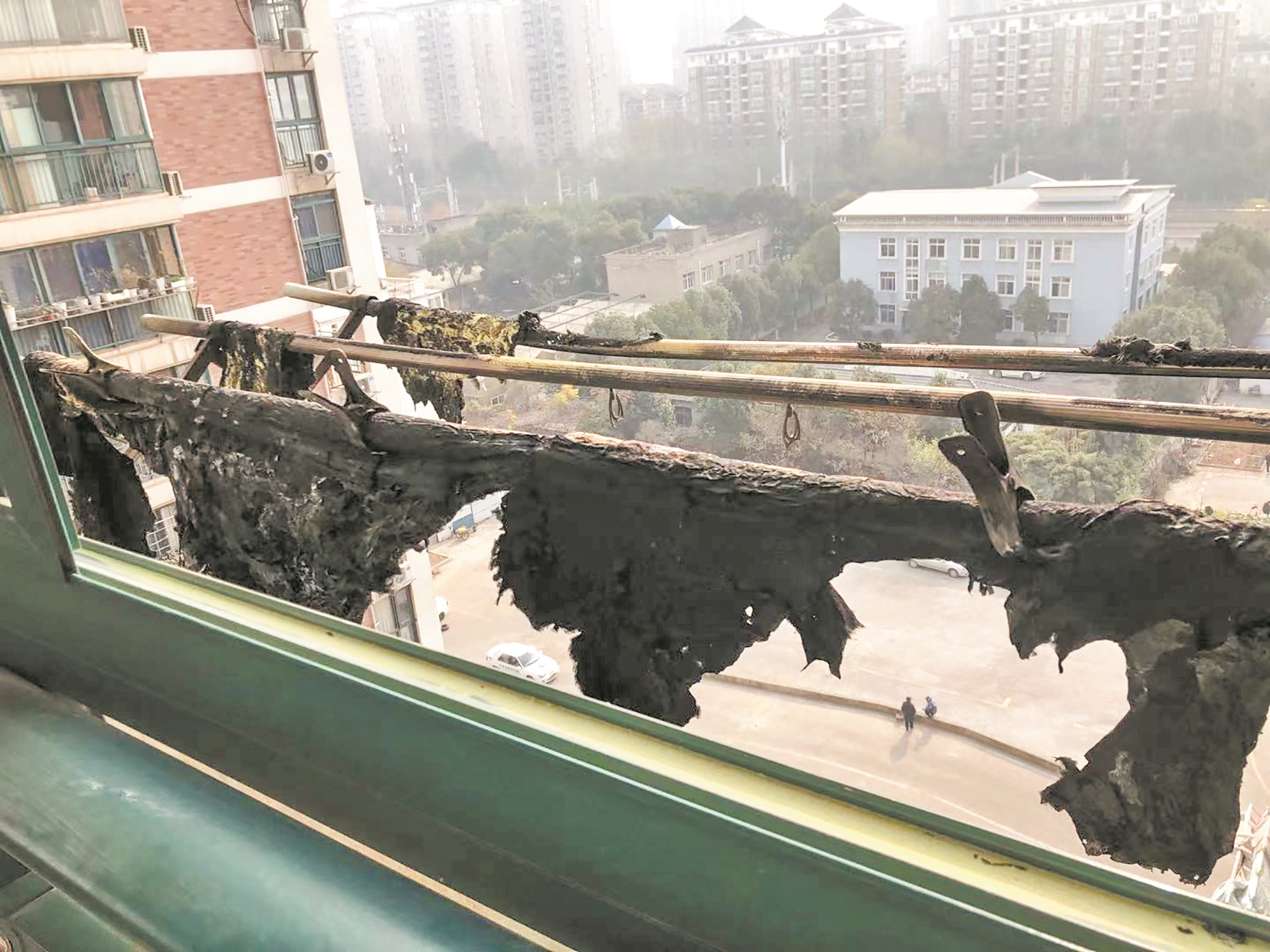 “找不到是谁扔的烟头,我们只能自己吃闷亏。”赵女士表示,除了当天晒着的棉絮被单,家中的晾衣架也被烧坏,阳台窗户的玻璃还炸裂开来,累计损失将近2000元。