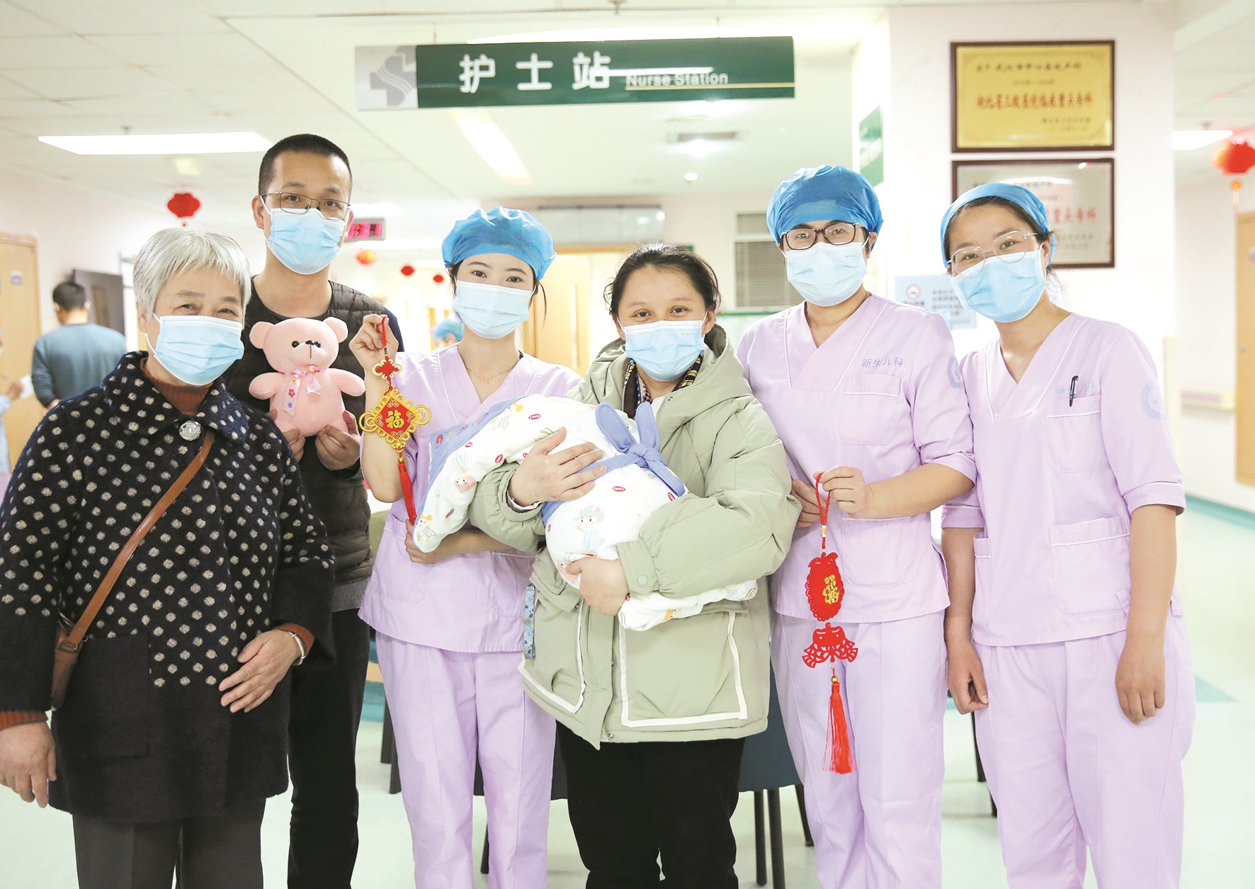 新生儿科医护人员为患儿送上平安结