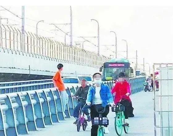 一些本用于保护行人的防撞栏成了市民拍照打卡的道具:市民为了获取更好的角度直接趴在机动车道边防撞栏上拍照,在拍摄过程中,还有市民把头和手臂伸向机动车道“凹造型”。