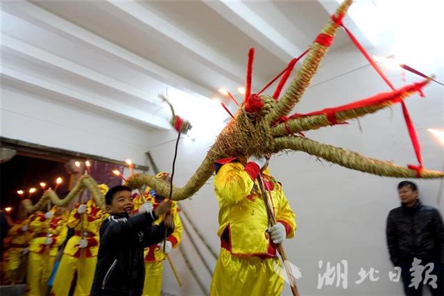正月十五除了观灯,还有舞龙灯。湖北大多数地方的龙灯,不论是布龙还是草龙,都比较富态,穿红挂绿,很花俏。但咸宁咸安的金丝草龙、崇阳的草把龙灯,却骨感、清峻,只以稻草编织,原始古朴。吴志坚介绍,目前的研究表明,这两处的龙灯极具古瑶特色,是探寻古瑶踪迹的现代遗存证明。