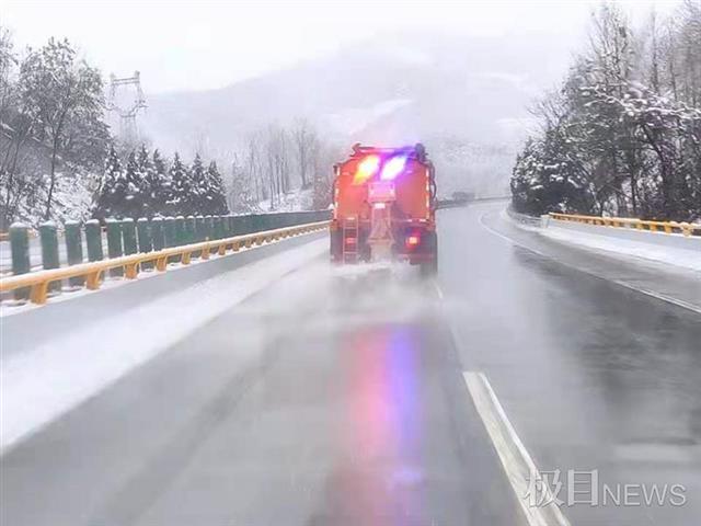 为防止路面出现凝冰现象,养护部门第一时间调动物资、机械、车辆、设备等铲雪除冰、疏通道路,确保车辆通行正常,加强路面安全隐患排查频次,针对桥梁多、弯道多,容易结冰打滑路段,加强保畅力量,密切关注路面情况。