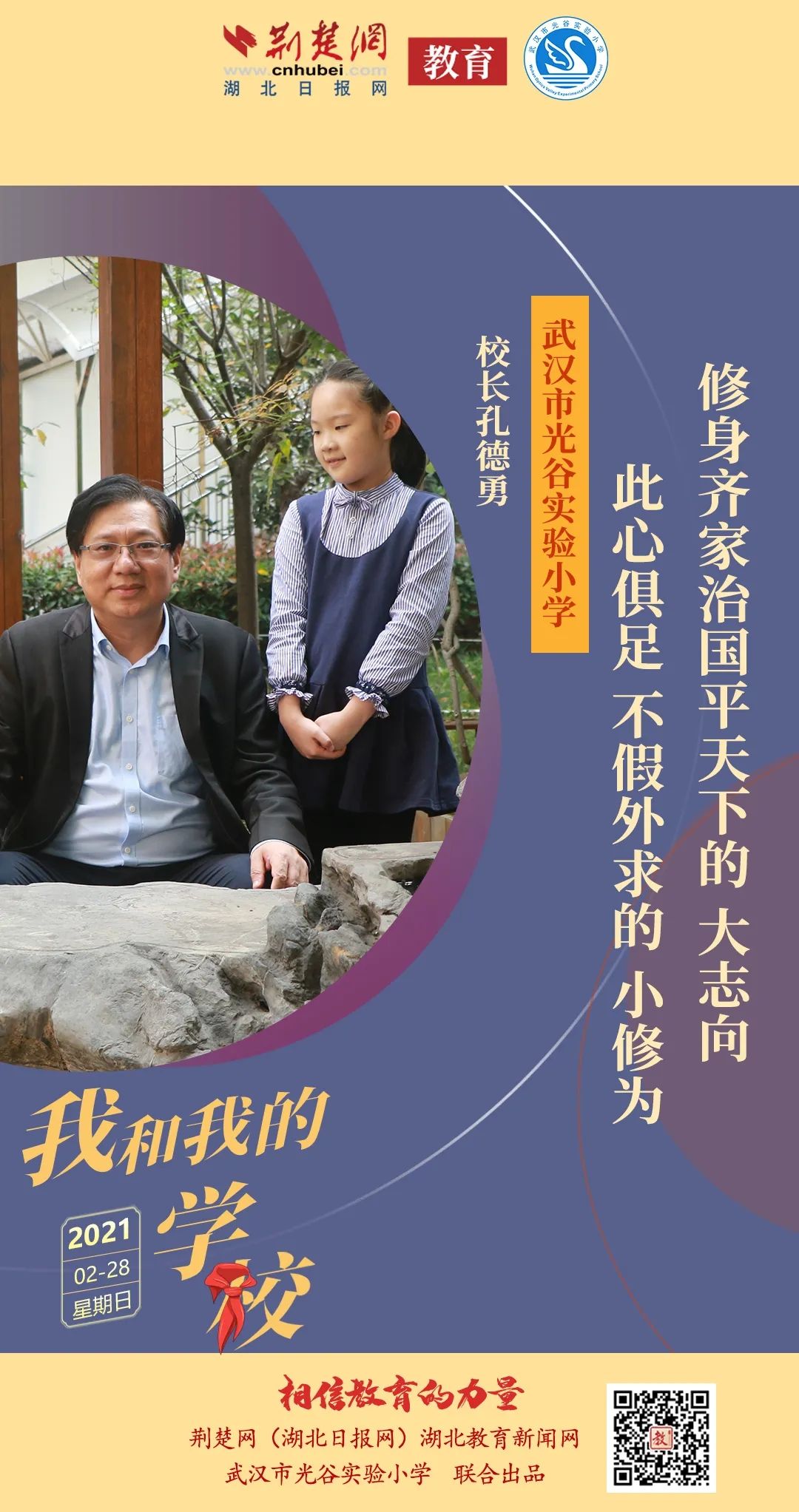 武汉市光谷实验小学校长孔德勇:人生价值高度是为人处世应该始终以国家、民族乃至人类作为出发点;而人生的深度,既要有胸怀“修身齐家治国平天下”的“大志向”,又要具备“此心俱足,不假外求”的“小修为”。