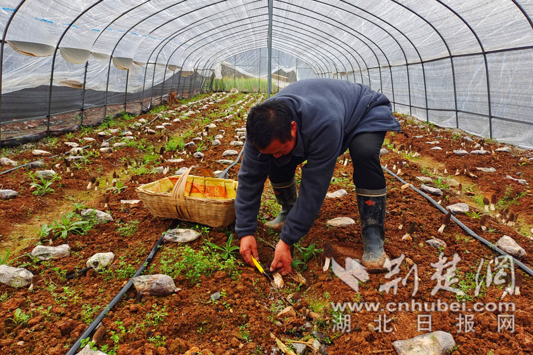 3月1日,兴山县峡口镇种植户郑军正忙着采摘第一批成熟的羊肚菌。通讯员 供图
