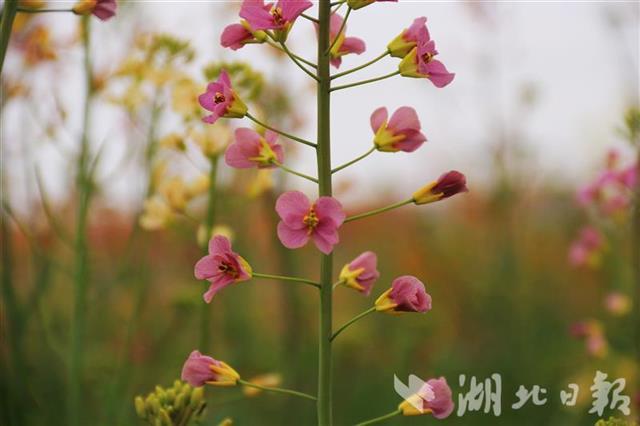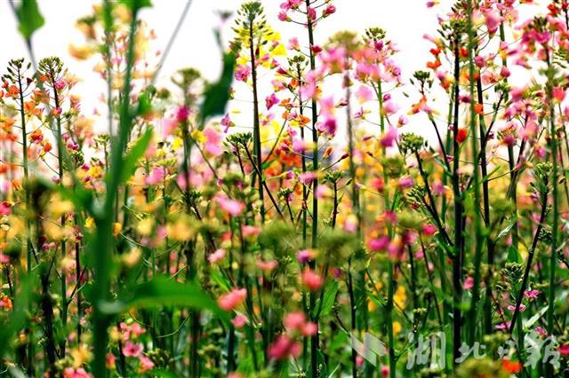 老话说,桃花红、梨花白、菜花黄。“油菜花田金灿灿”是人们对油菜花的固有印象。和很多乡村满地金黄不同的是,这里的油菜花“多了几分颜色”,姹紫嫣红、争奇斗艳,别具一格。江夏多彩油菜花海内,盛放着白色、粉色、紫色、橙红色、金色的油菜花,刷新了颜值,颠覆了春天的色彩。