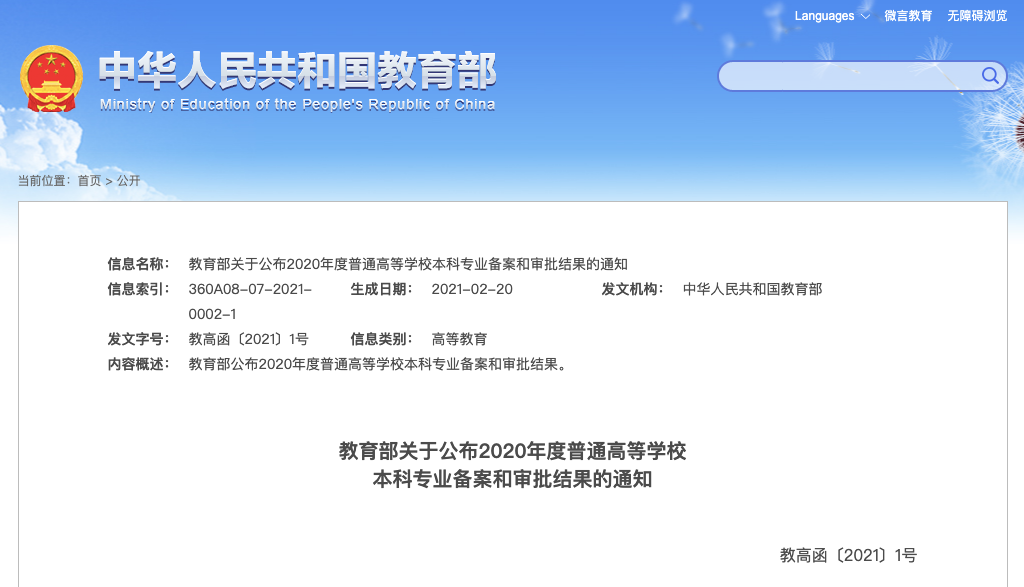 近日,教育部官网发布《教育部关于公布 2020 年度普通高等学校本科专业备案和审批结果的通知》,官宣撤销 518 个高校本科专业。