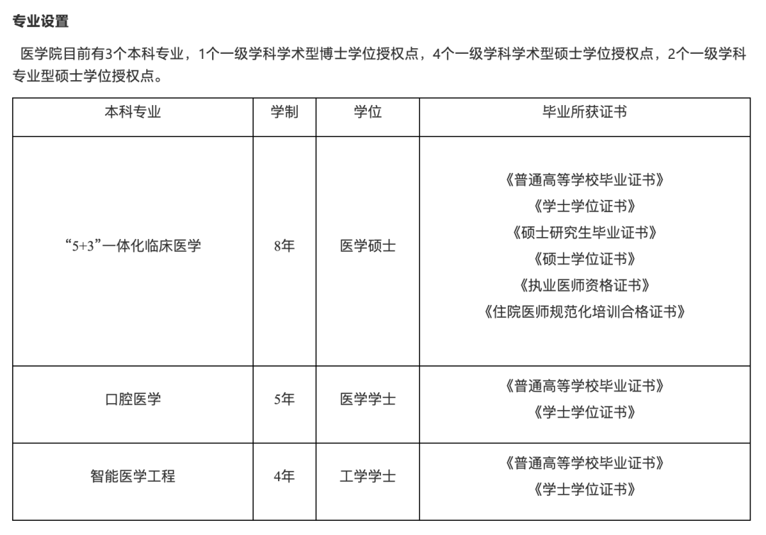 南开大学医学院本科专业设置(来源:南开大学医学院网站)