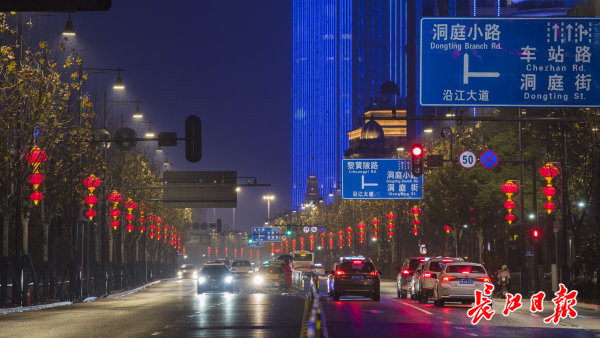 2021年1月24日,武汉市各大主干道及高架桥上相继挂上了一串串红灯笼。记者胡冬冬 摄