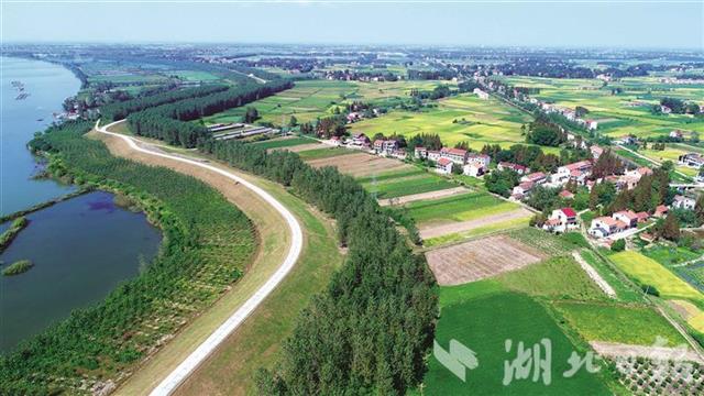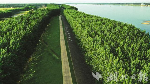 长江干堤石首段造林复绿。