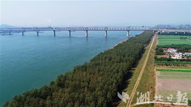 枝江市25公里长江防护林顾家店镇枝城大桥头岸线绿化。