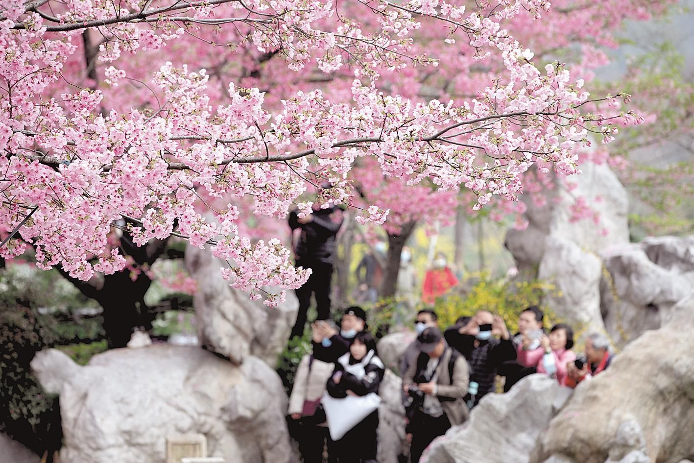 2月27日,武汉东湖樱花园早樱绽放,游客畅游花海。(湖北日报全媒记者 柯皓 实习生 胡宇韬 摄)