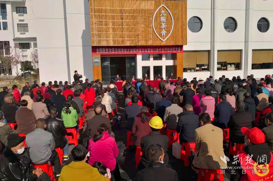 全国脱贫攻坚总结表彰大会精神宣讲会暨峡口茶叶合作社分红大会。通讯员 供图