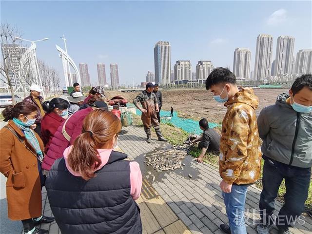 极目新闻3月4日讯(记者张奇)汉阳四新大道附近有座正在建设中的人工岛,名为长岛。其所在地原本有一片湖。近日,当地有单位正在对周边水系进行综合治理,抽干了湖水,湖中的鱼随之冒了出来。不少附近居民得知消息后特意赶来抓鱼,现场充满趣味。