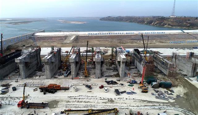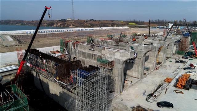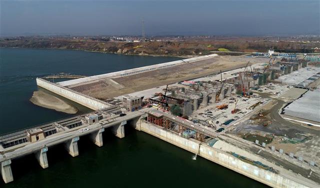 3月4日,笔者在位于宜城市郑集镇境内的汉江雅口航运枢纽工程工地现场看到,目前,该工程一期工程的右岸船闸、电站厂房、16孔泄水闸等已完工。二期工程包括余下的28孔泄水闸以及水下海漫工程正在紧锣密鼓施工。
