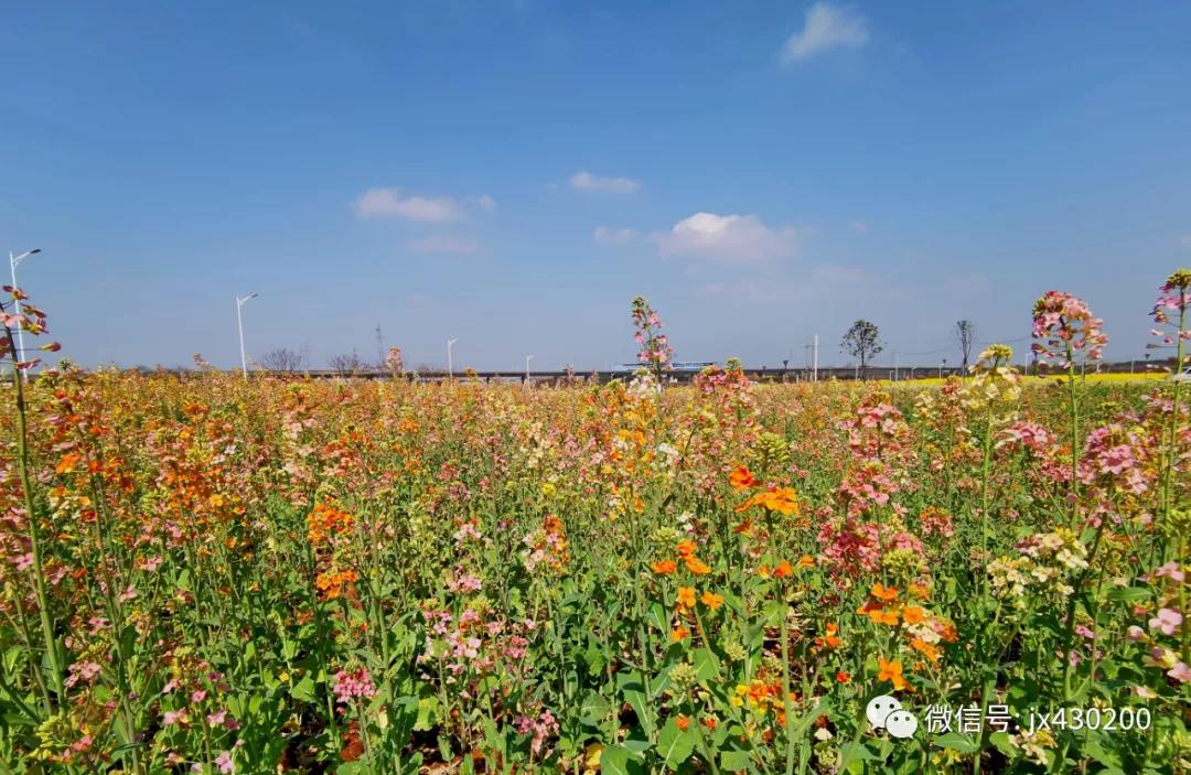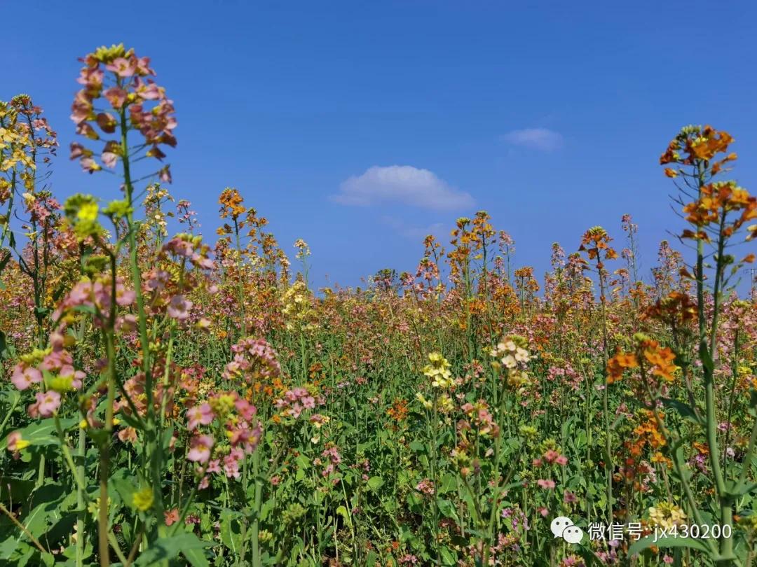 荆楚网(湖北日报网)讯 (通讯员王夫之)春风送暖,万物复苏,行走在五里界街的村湾,处处新蕊吐翠,群芳竞艳,一点点,一丛丛,一树树,一片片,处处皆是景,湾湾美如画。3月4日,记者在花博园彩色油菜花田看到,不少市民游客纷纷慕名而来,在此拍照打卡。