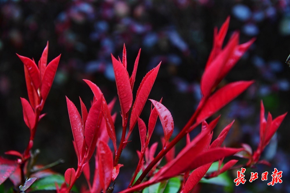 东西湖区武汉海昌极地海洋公园,植物迎着惊蛰后的雨水萌发。记者李永刚 摄