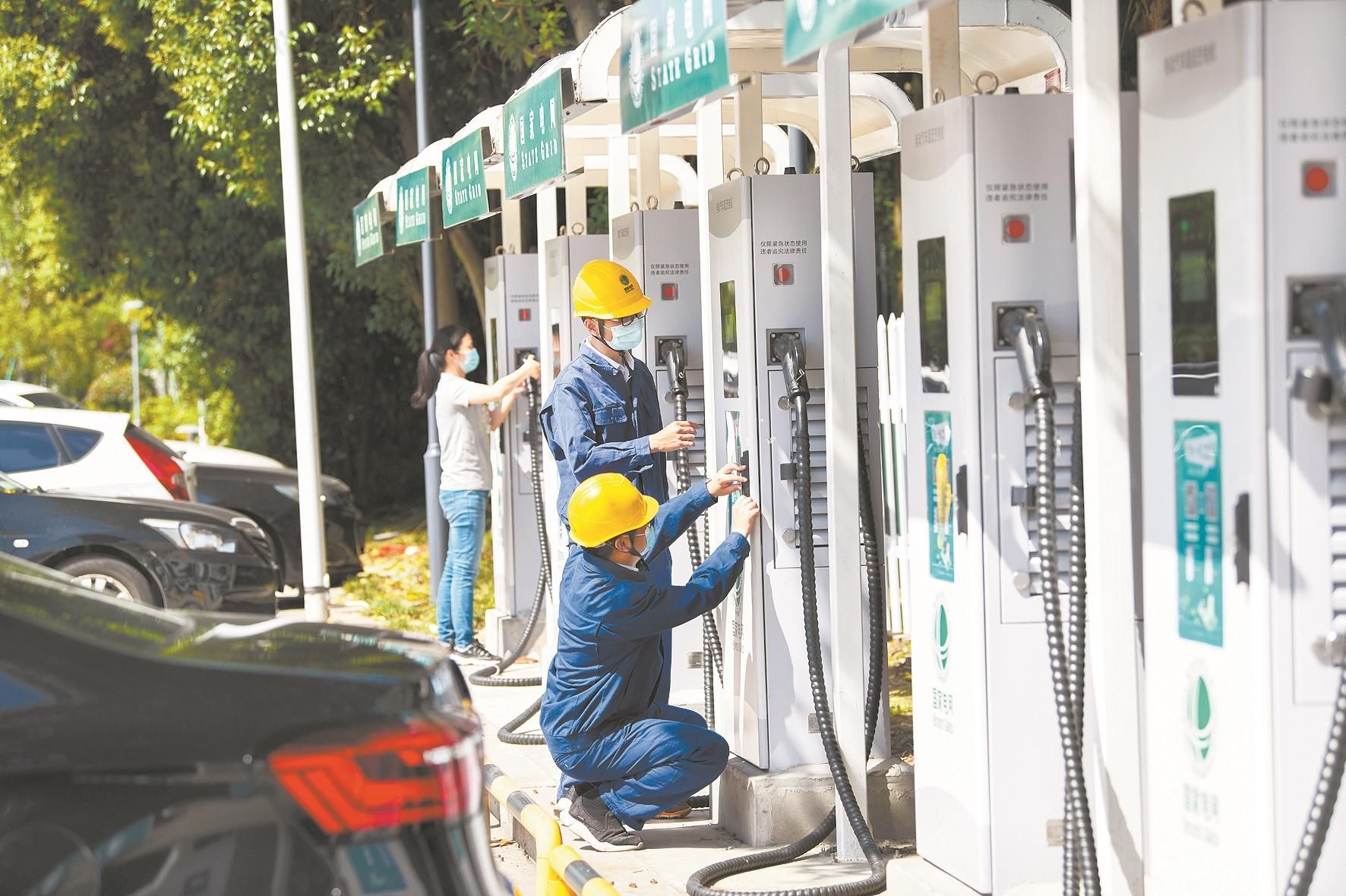 工作人员正在维修充电桩