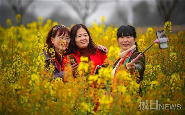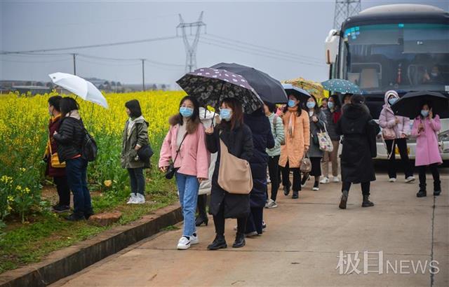 极目新闻3月8日讯(记者黄忠 刘中灿)3月8日国际妇女节,在江夏梁湖大道的七彩油菜花田格外灿烂耀眼,这里迎来了一批又一批赏花的女同胞们,虽然下着小雨,丝毫没有影响她们赏花的心情。