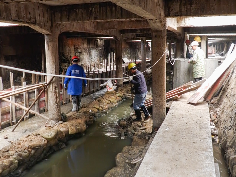 “为防止对周边的房屋造成破坏,我们在施工时,会在河堤内打杉木桩,特殊位置采用顶管施工。同时,还会邀请第三方检测机构,对周边的房屋、河堤进行实时检测,如果发现大的沉降或者其他问题,及时采取安全措施 。”中国恩菲工程技术有限公司安全经理潘辉说。
