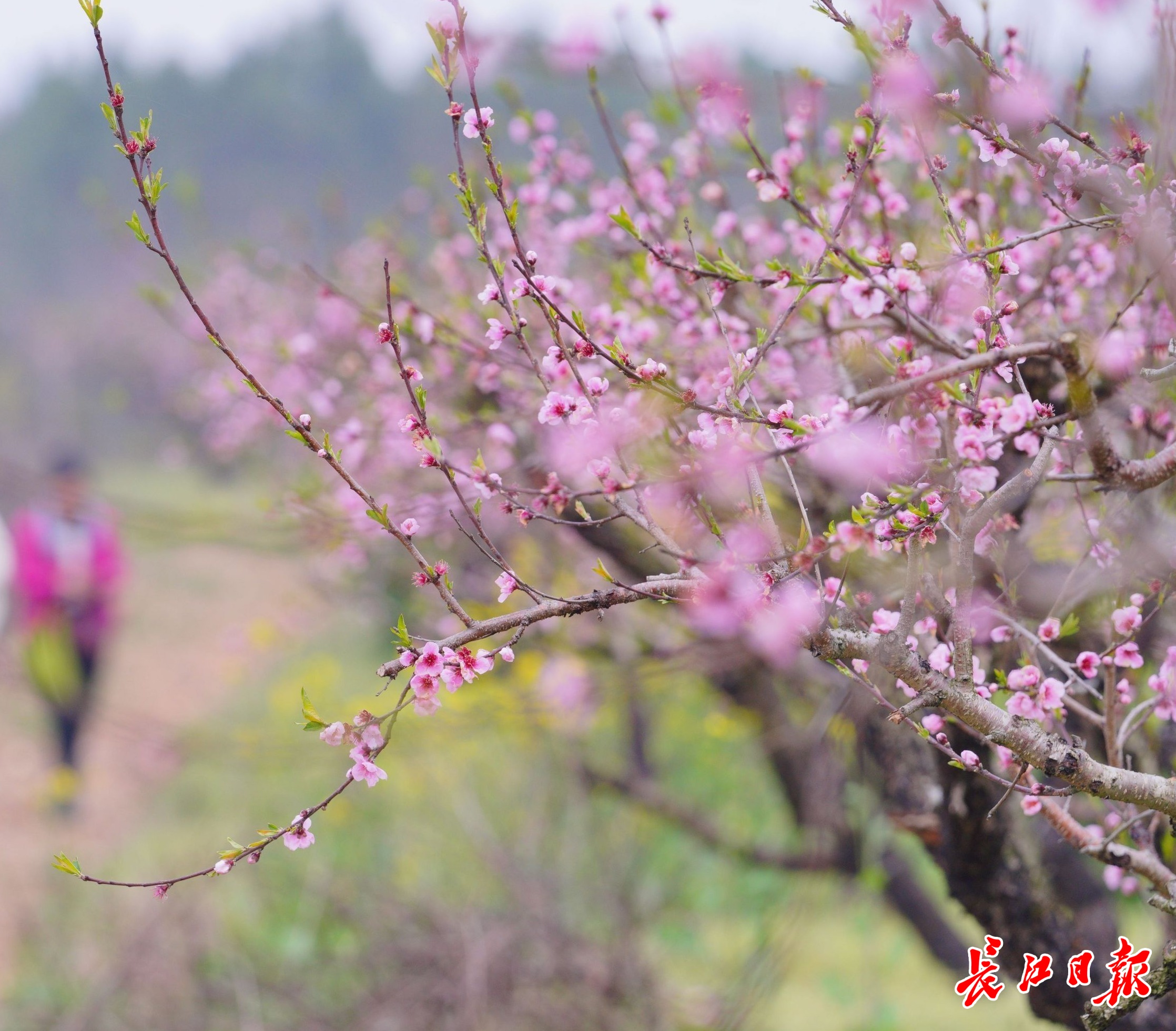 在新洲区李集街,桃花进入盛花期,吸引了不少游客前来赏花踏青。记者刘帅 摄