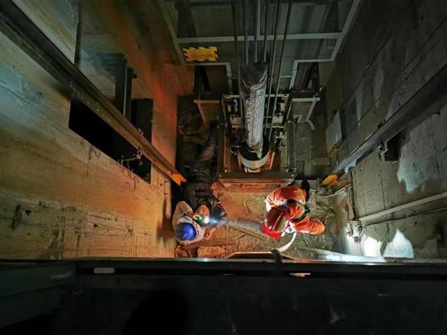 在了解现场情况后,指挥员李诗哲立即制定救援方案,由1名消防员从电梯井上方入口利用强光照明灯照明。李诗哲带着消防员黄峥从负二层电梯口利用绳索滑到井底救人。到达井底之后,救援人员立即检查工人的受伤情况,发现其有微弱意识,全身多处有明显骨折现象。由于电梯井底空间狭窄,加上井底的缓冲装置的阻隔,无法利用担架进行救援,救援人员随即决定用吊带和分体式充气救援气囊对受伤工人进行双重固定,避免在升井救援过程中造成二次伤害。在确保固定安全后,救援人员使用绳索将被困者的身体绑住,地面上的消防员、工友协力将伤者从井底拉起。经过了约半个小时的紧张救援,伤者被成功救出,并由医护人员送往医院进行检查治疗。