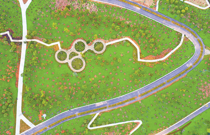 据了解,鸡公山公园充分运用“海绵城市”建设理念进行绿化造景,覆绿18.36万平方米,形成生态草沟、雨水花园、生态湿地等景观,成为三季有花、四季有景,集登山、徒步、自行车运动为一体的综合休闲运动富氧山体公园。