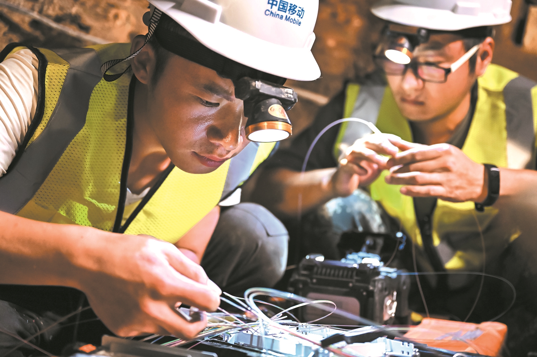 移动技术人员为用户安装宽带