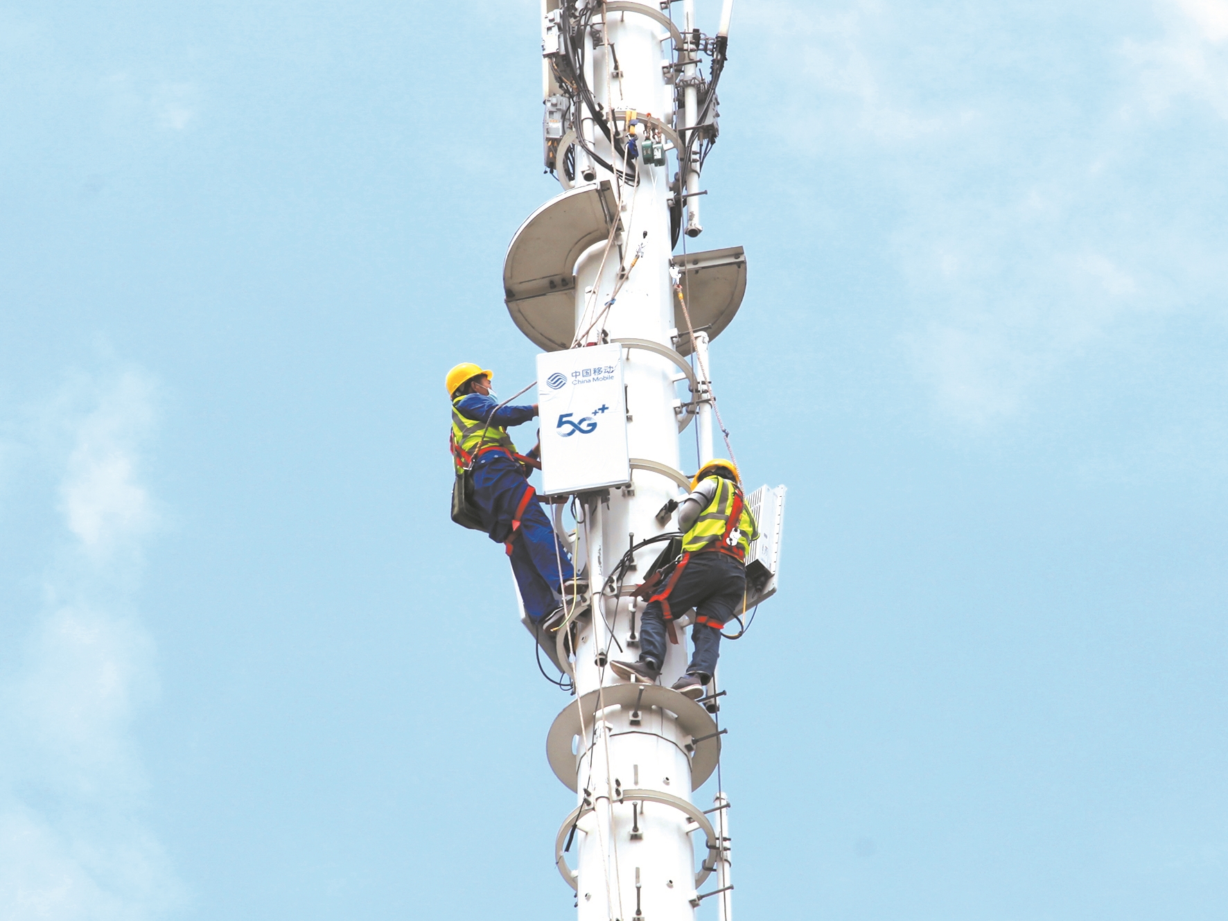 移动技术人员安装5G设备