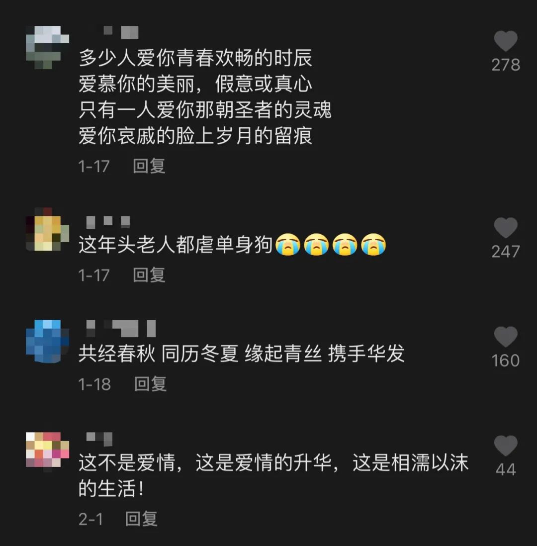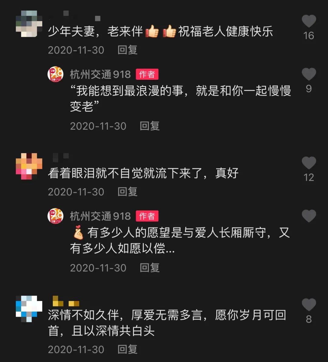 看到有网友说:“不羡慕风华正茂的情侣,只羡慕老来相伴,还能牵手。老来多健忘,唯不忘相思。”