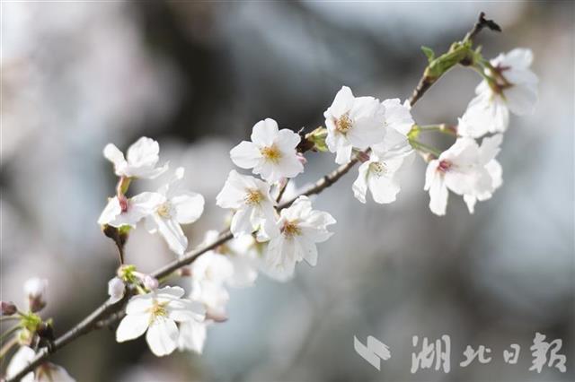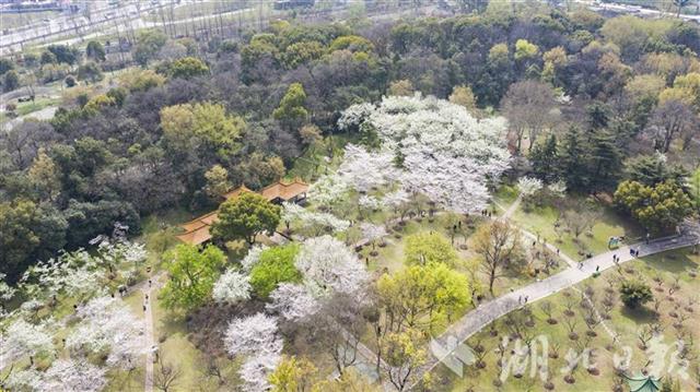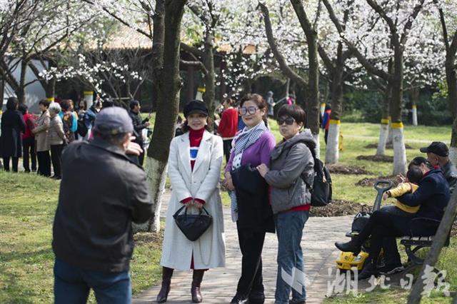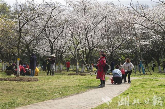 2021年3月12日,武汉市青山区青山公园内樱花盛开,吸引众多游客游园赏樱。作为“相约春天赏樱花”活动的40个赏樱点之一,青山公园园内植有1000余株樱花,其中“御衣黄”品种在武汉少见。(湖北日报全媒记者 何宇欣 摄)
