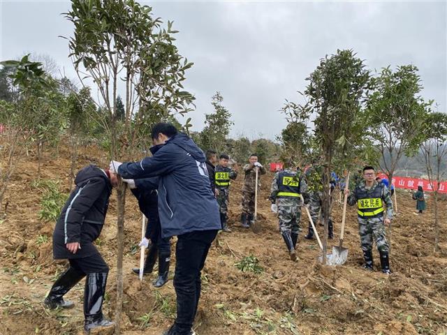 湖北日报讯(通讯员全涛、曹征服、程安东)3月12日上午,咸丰县忠堡镇联合张南高速公路宣咸段建设方——湖北长江路桥有限公司在该镇板桥村在建高速公路服务区植树点开展2021年春季义务植树活动,以实际行动助推乡村振兴,为建设美丽忠堡增绿添彩。植树现场,70余名政企联合义务植树队员干劲十足,经过一上午热火朝天地奋战,大家一起种下红豆杉、桂花树共200余棵。