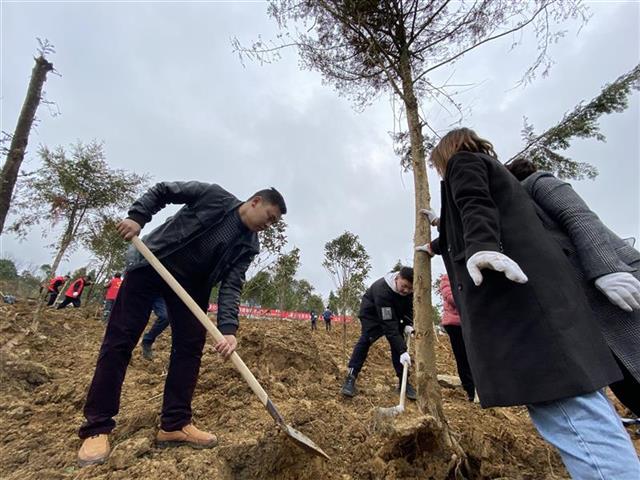 忠堡镇开展政企联合春季义务植树活动